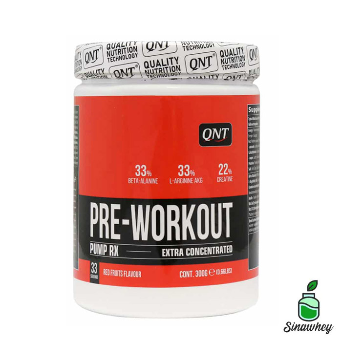 • پودر پره ورک اوت 300 گرم کیو ان تی، کمک به افزایش قدرت و استقامت عضلانی