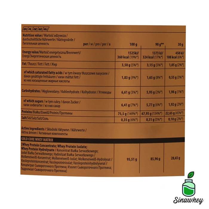 پروتئین وی 100 گلد کر لاین با برند ترک نوتریشن برای استفاده افراد بالای 18 سال در قوطی پلاستیکی 1500 گرمی، شامل 50 سروینگ تحت لیسانس ترک نوتریشن (Trec Nutrition) لهستان و توسط کارخانه کیمیا مکمل آراد در ایران تولید می شود.
