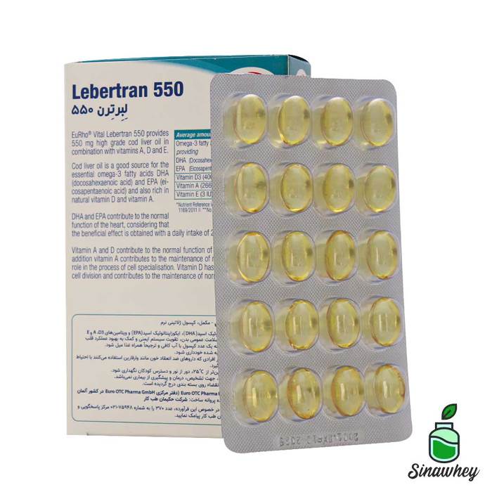 لبرترن 550 یوروویتال، تامین کننده 550 میلی گرم روغن کبد ماهی با درصد خلوص بالا به علاوه ویتامین های A، D و E می باشد. روغن کبد ماهی منبع کافی از اسیدهای چرب امگا3، دوکوزاهگزانوئیک اسید (DHA) و ایکوزاپنتانوئیک اسید (EPA) و همچنین منبع غنی از ویتامین های D و A می باشد.