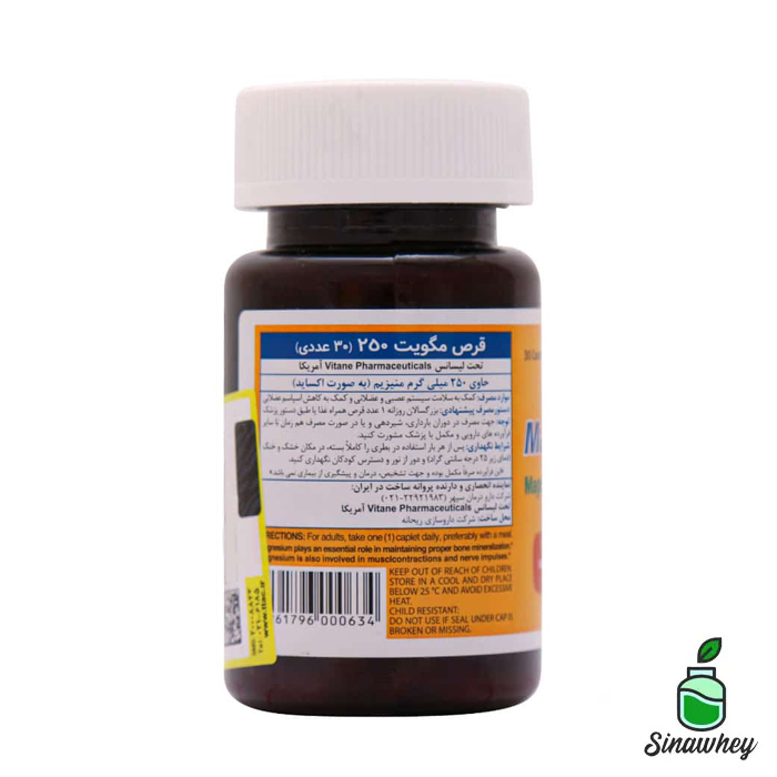 • قرص مگویت، حاوی 250 میلی گرم منیزیم به فرم اکساید (با خلوص بیشتر)